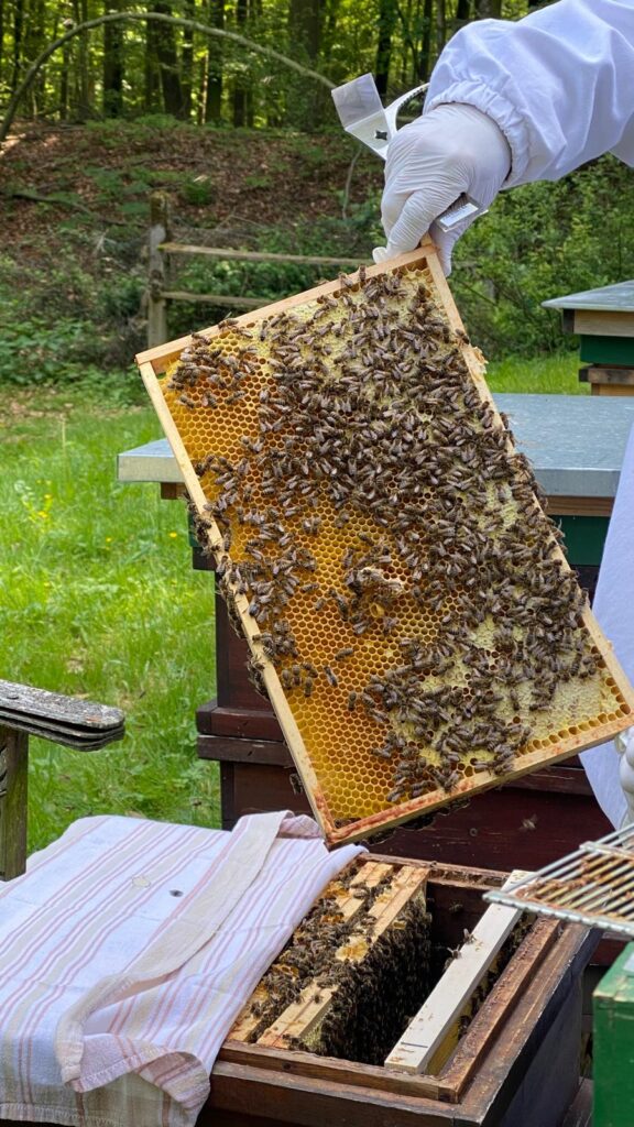 Unsere Imkerei wird von zwei erfahrenen Imkerinnen betreut. Neben der Bienenzucht setzen wir auf Insektenhotels und fördern die Ansiedlung von Hummeln, um die Biodiversität unserer Gärten zu unterstützen. Ein lebendiges Summen für eine blühende Zukunft.